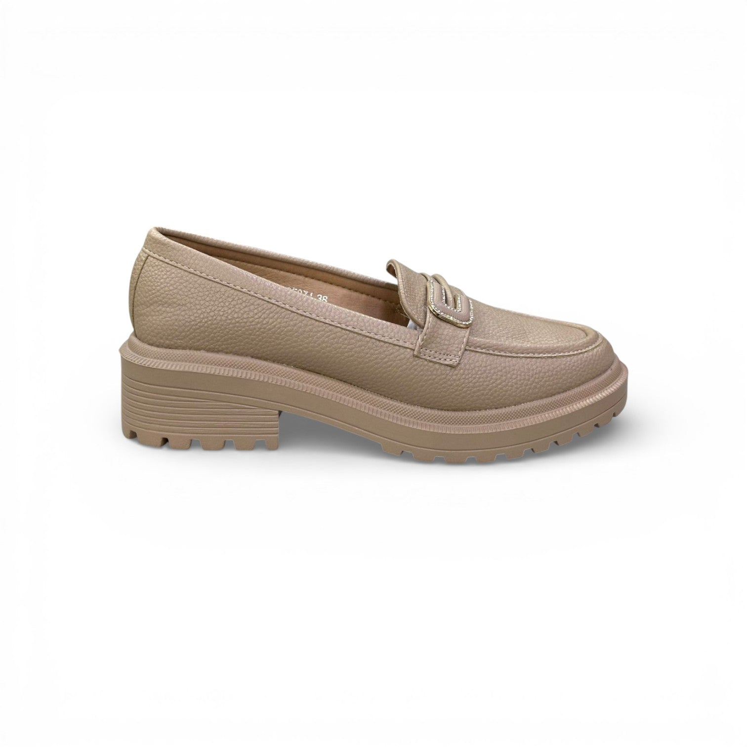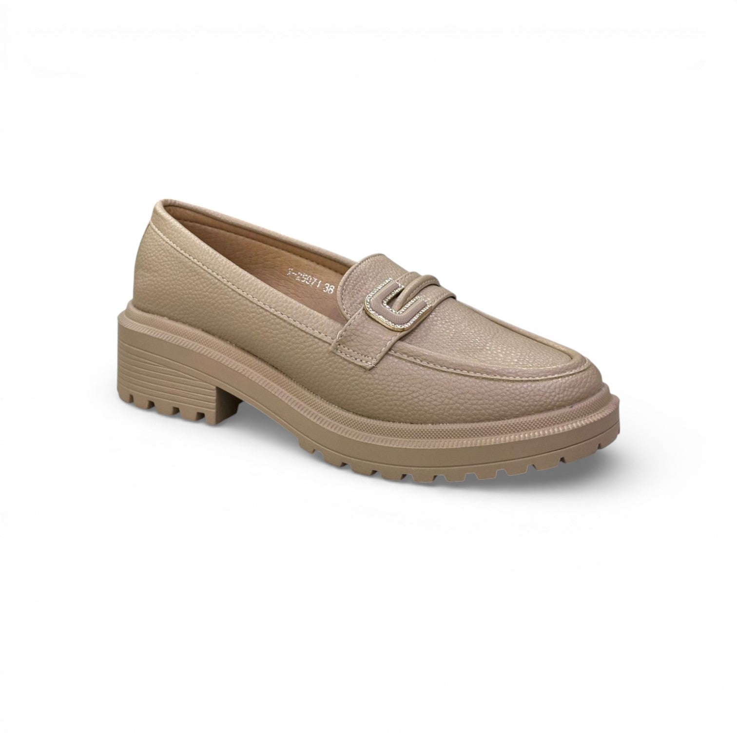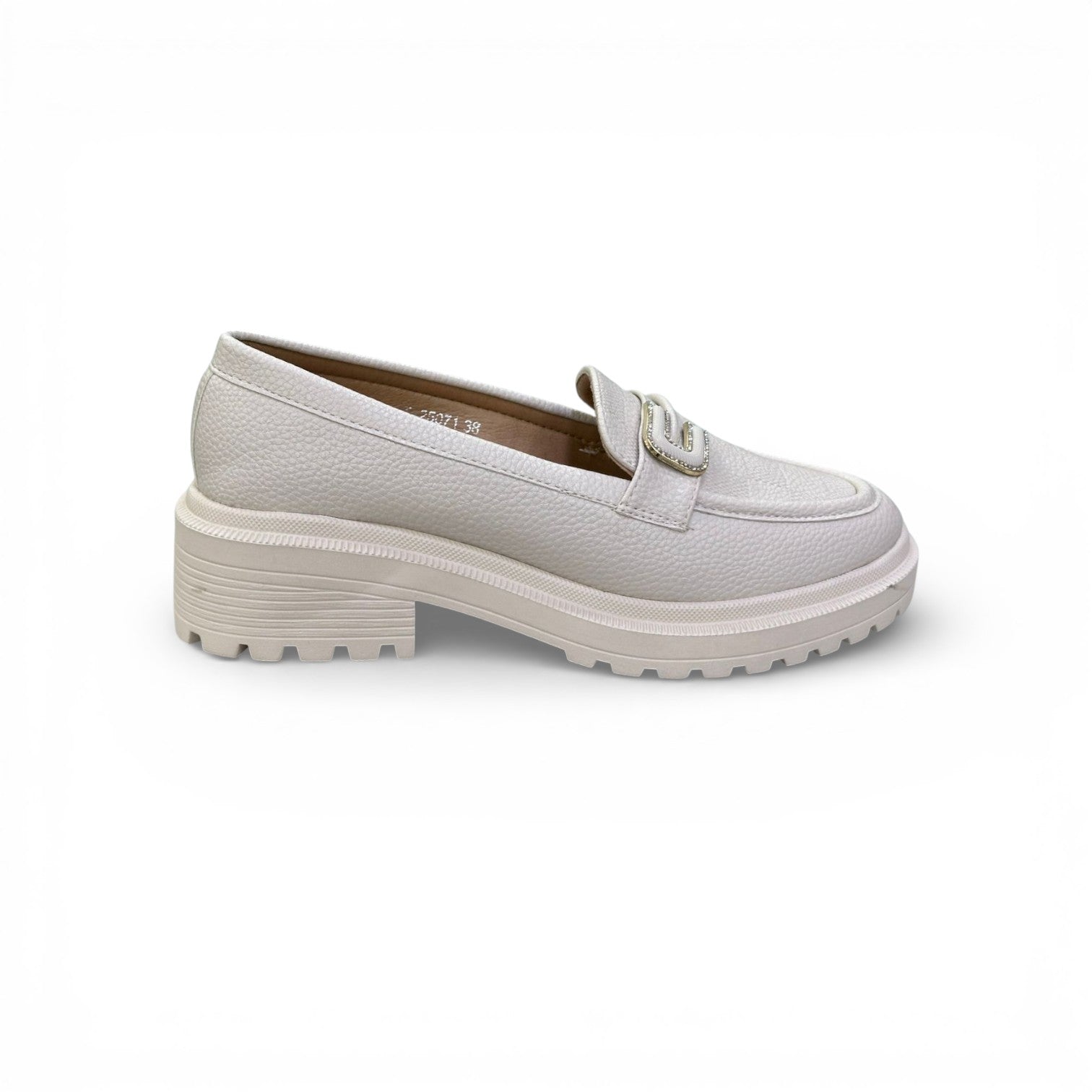 Step into effortless elegance with these women’s chunky platform loafers, where contemporary design meets everyday wearability. The slip-on silhouette eliminates fussy fasteners while the substantial lug sole delivers both visual impact and practical stability underfoot. A refined silver-tone horsebit buckle adds a polished accent to the timeless loafer profile. Available in versatile ivory and beige tones, these shoes seamlessly transition from casual outings to more put-together occasions, offering the perfect balance of comfort and understated sophistication for the modern wardrobe.