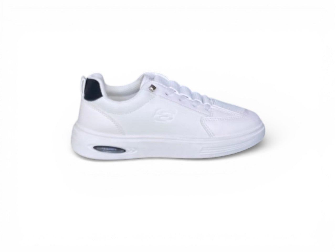 Sneakers that marry contemporary design with practical wearability. The matte-finish upper pairs with a striking white platform sole featuring visible cushioned heel technology for superior shock absorption. Lace-up closure ensures a secure, customizable fit, while the textured rubber outsole delivers reliable traction across surfaces. A convenient heel pull tab streamlines on-and-off ease. Lightweight construction and versatile styling make these trainers equally at home in casual professional settings or weekend casual wear. Built for comfort and durability without compromising on modern aesthetic appeal.
