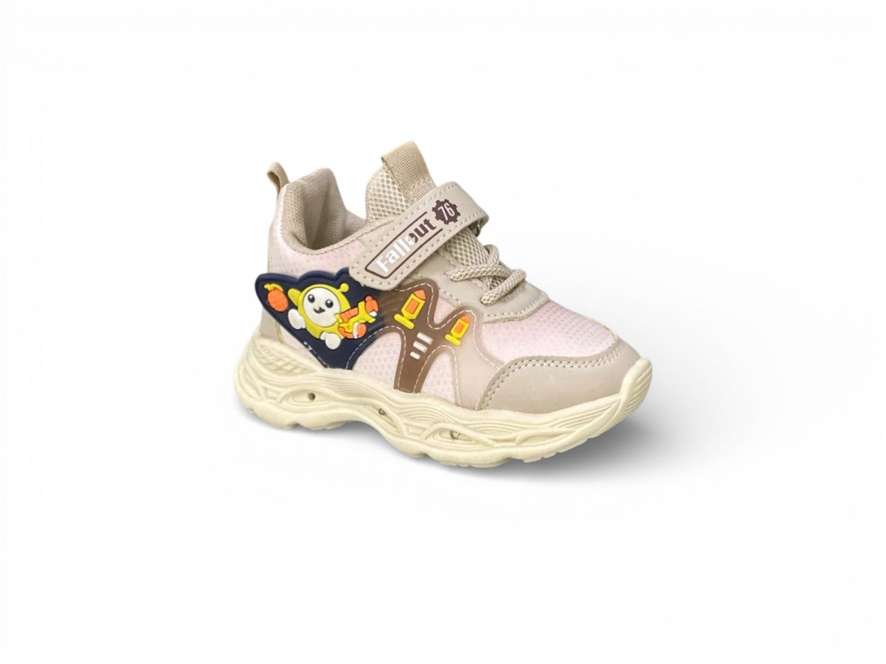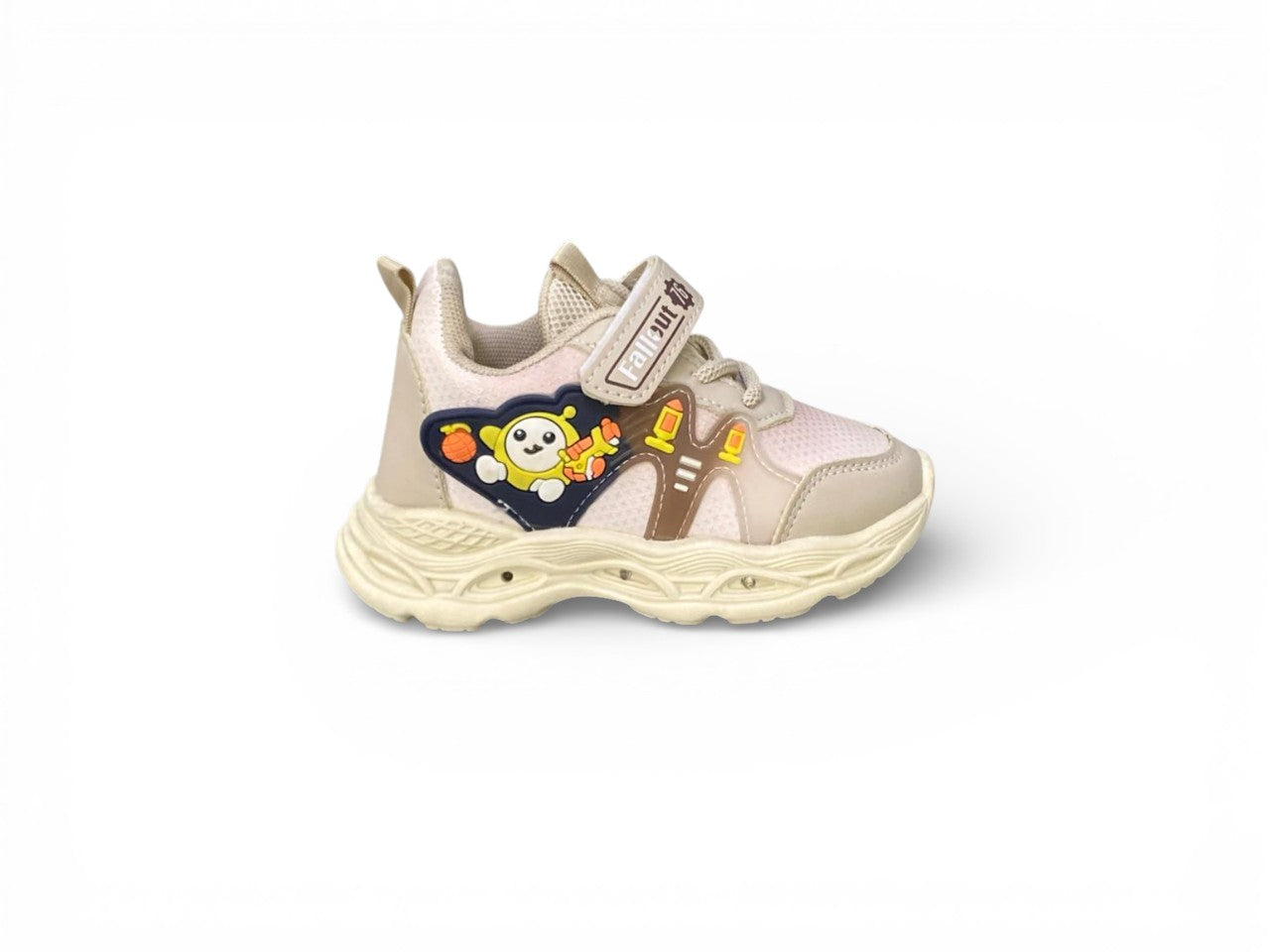 Engineered for active toddlers and kids, these “Fallout” Adventure Joggers combine practical design with engaging style. The chunky cushioned sole delivers shock absorption during high-impact play, while the lightweight, breathable construction maintains comfort throughout the day. Velcro straps and elastic laces streamline the dressing process for busy parents. Vibrant cartoon character patches contrast beautifully against the neutral beige base, adding visual interest without overwhelming the design. Built with durable, non-slip materials, these joggers provide the structural support developing feet require during running, jumping, and everyday exploration.