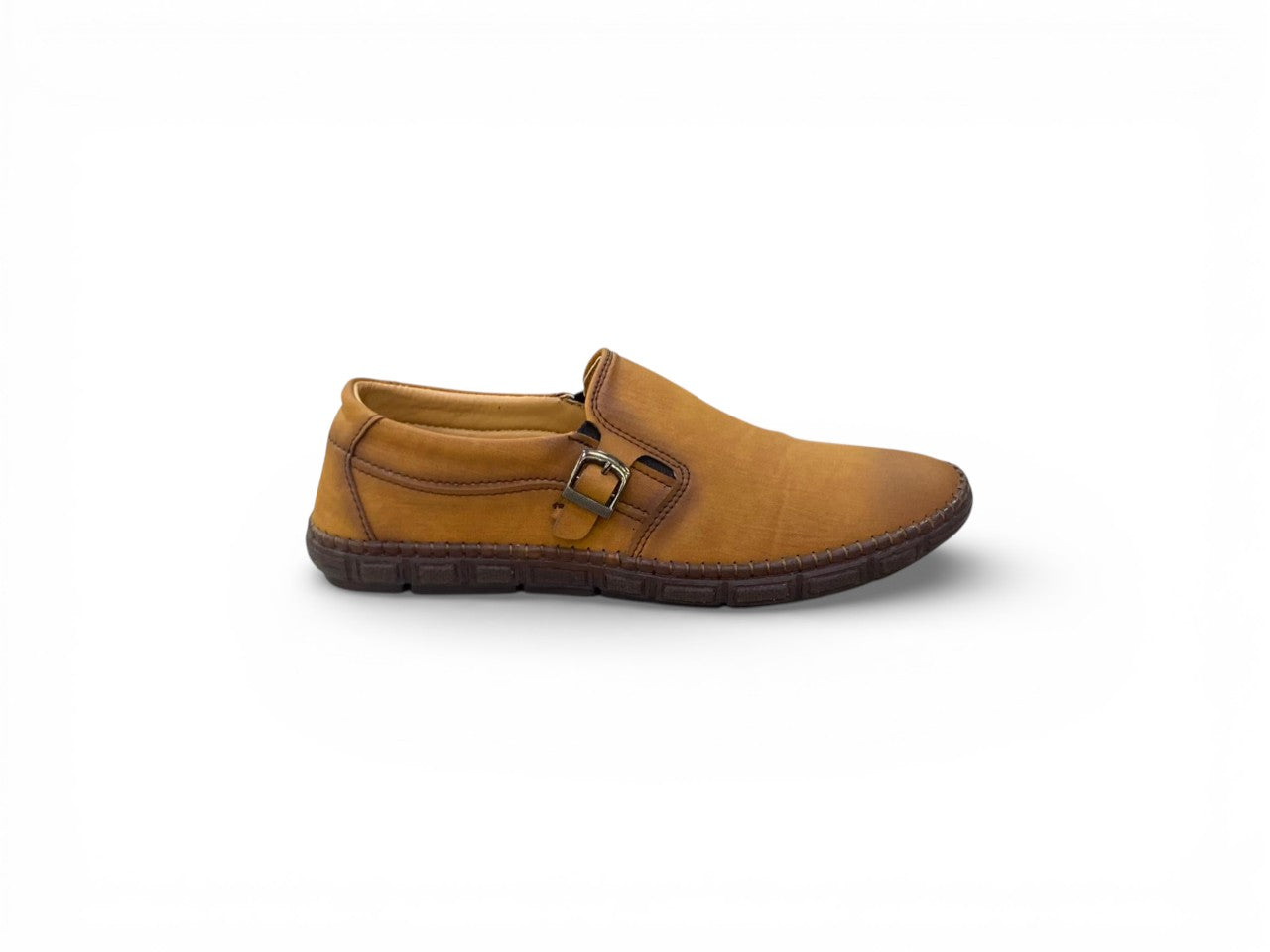 Step into effortless sophistication with this men’s casual medicated loafer, engineered for professionals who demand both style and comfort. The camel-toned synthetic leather upper features refined hand-stitched detailing and a signature side buckle accent that elevates any casual ensemble. Built on a non-slip crepe sole, this loafer delivers reliable traction throughout your day, while the cushioned insole technology actively reduces foot fatigue during extended wear. Ideal for office environments or weekend outings, it combines practical design with understated elegance for the discerning gentleman.