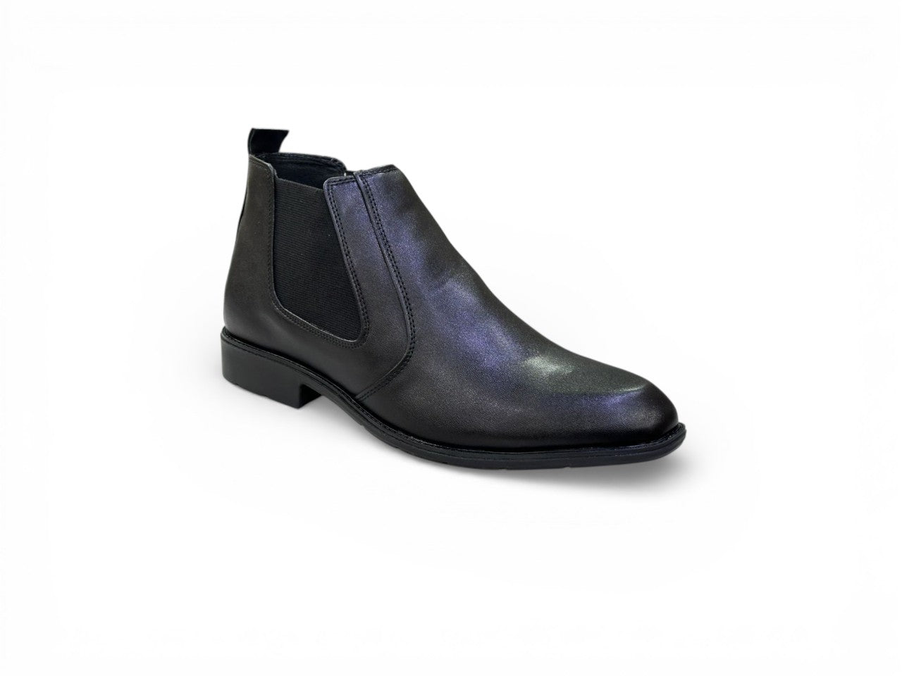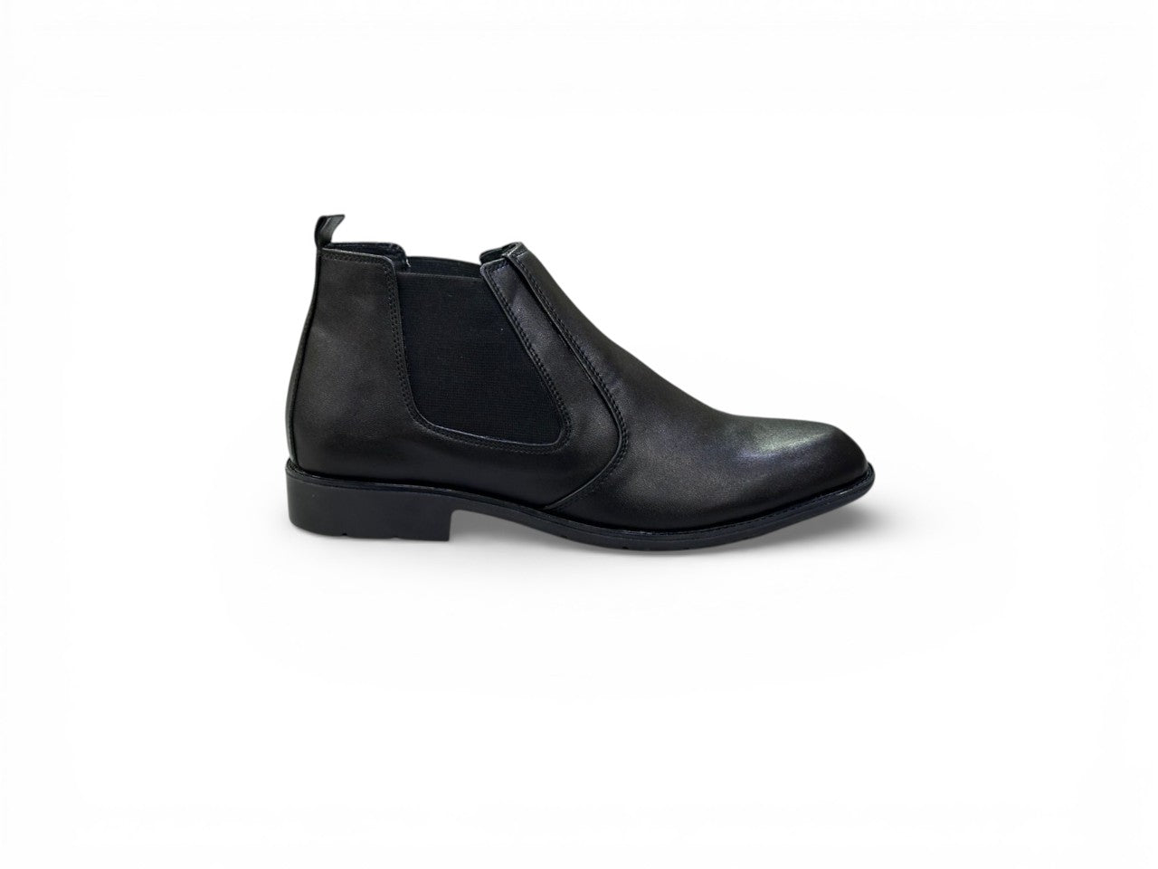 Black leather Chelsea boots represent a cornerstone of refined footwear. Constructed from premium cow leather with a polished finish, these boots deliver timeless elegance suitable for formal settings or smart-casual styling. The signature elastic side panels and rear pull tab enable effortless on-and-off convenience, while the imported rubber sole provides reliable traction and stability. A breathable lining maintains comfort throughout extended wear, making these boots equally at home with tailored trousers or quality denim. This is sophisticated footwear engineered for both durability and everyday wearability.