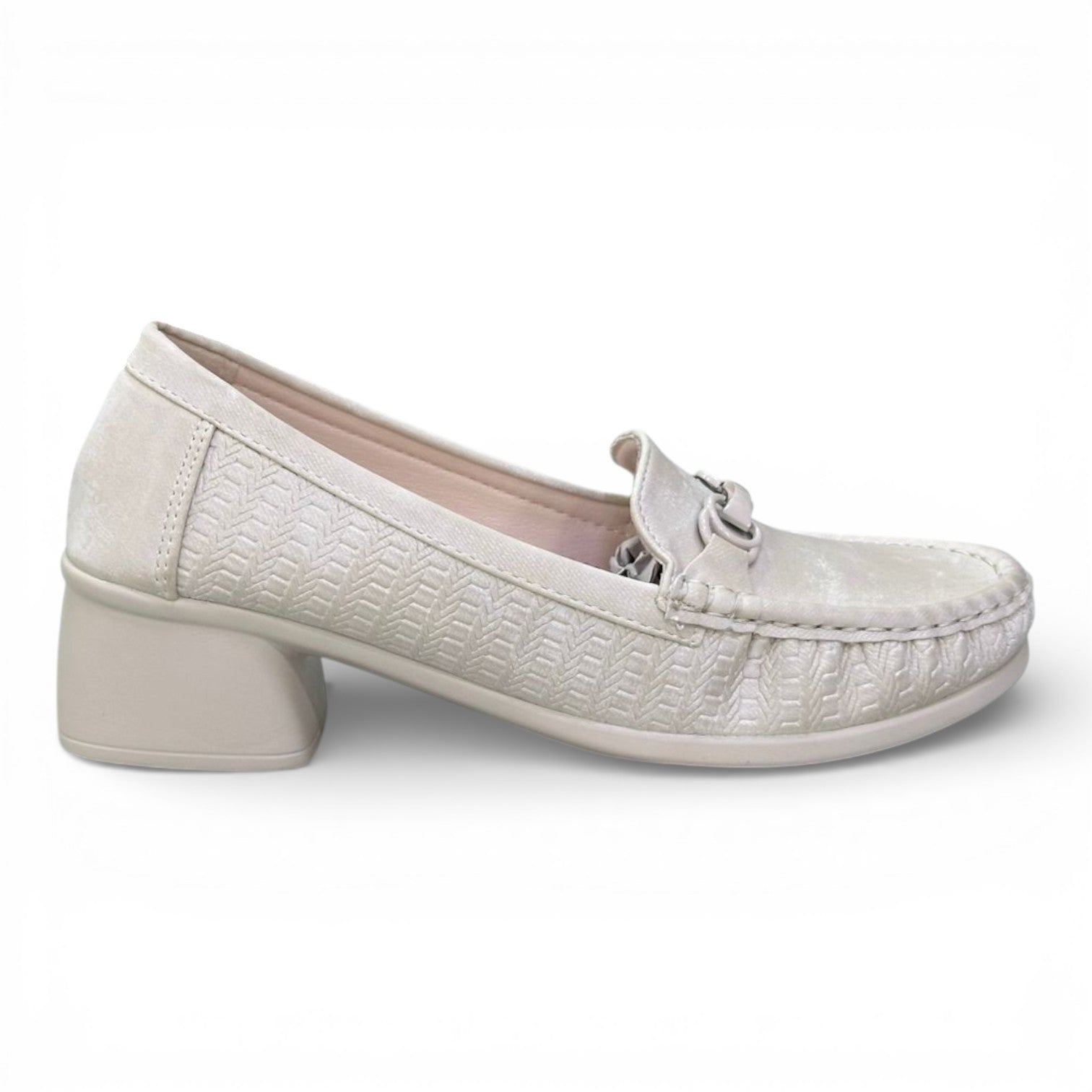 Women’s heeled loafers combine timeless sophistication with contemporary comfort. The slip-on silhouette features a sturdy block heel that provides stable support throughout your day, while the subtle textured upper adds visual depth. A signature metallic chain or horse-bit accent delivers that coveted bit loafer aesthetic. Equally at home in the office or at evening events, these versatile shoes seamlessly transition between business casual and semi-formal occasions, making them an essential addition to any refined wardrobe.